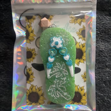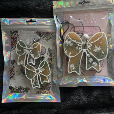 Here I have posted various random pictures of freshies I made for certain orders, and what I may have in the store now. I placed them so that you may get an idea of what you can do. In the "customization" section you can provide ALL of the details to describe exactly what you want. The are hand crafted. From scenting the beads, dying them, baking and painting...so nothing can be "perfect", But, I will get just as close as possible! I also make Freshie hangers as a more permanent car fixture that you can hang your ever-revolving collection of freshies from! Pictures of all the options you will have will be posted for idea purposes as well.